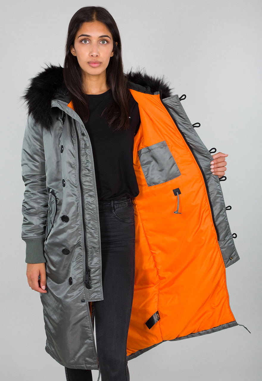 Dámsky dlhý kabát, ktorý chráni Vaše nohy pred mrazivým chladom. Tento zimný kabát ma okolo kapucni umelú odnímateľnú kožušinu, v oblasti hrudníka malá výšivka, vnútorná oranžová podšívka. Zloženie: Vonkajší materiál: 100% Nylon Podšívka: 100% Nylon