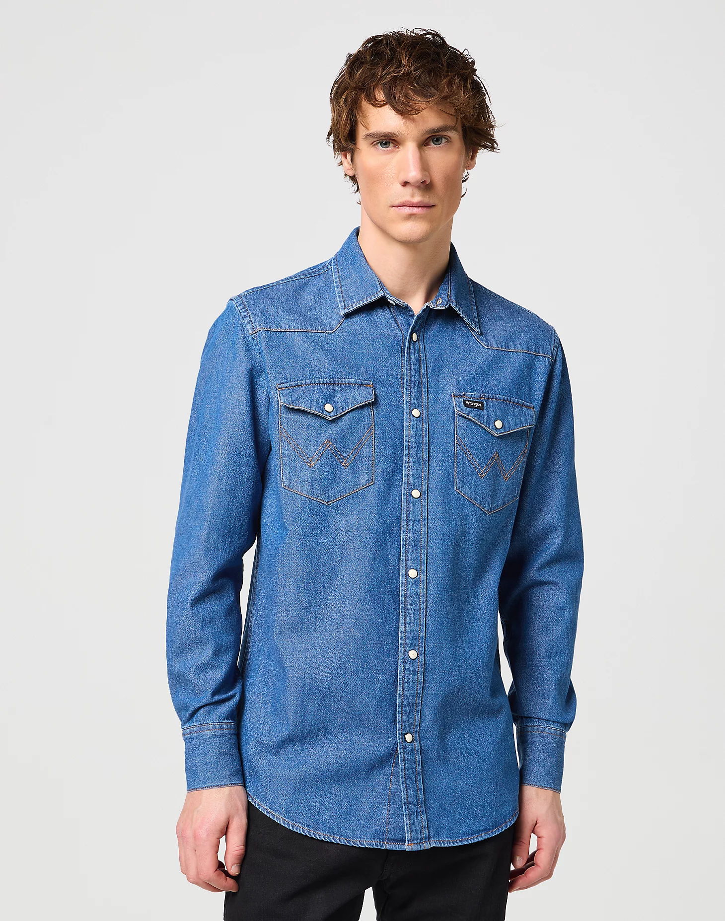 Džínsová Košela WRANGLER Western Barrel modrá