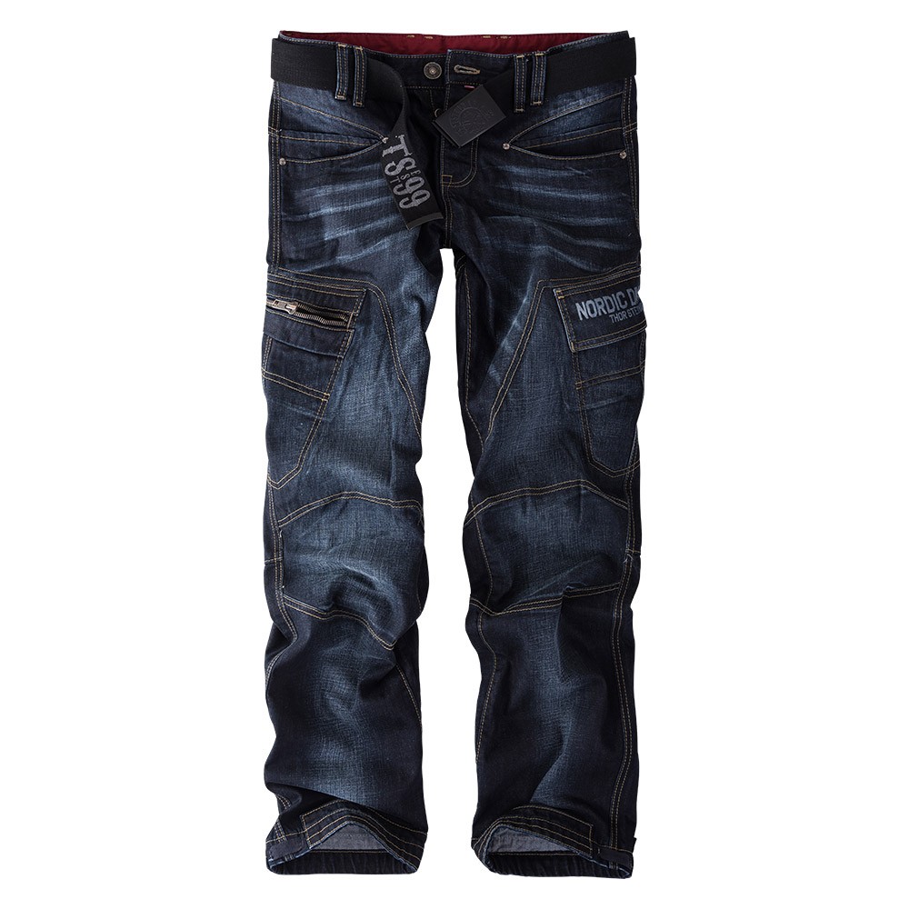 Trendy cargo rifle Thor Steinar, vyrobené zo silného bavlneného materiálu. Dve klasické bočné a zadné vrecká, vrecká na stehnách, uzatvárateľné zipsom a príklopkou. Tvarované kolená, zosilnený zadný sed. Dolný okraj nohavíc je možné regulovať šnúrkou. Potlač na príklopke bočného vrecka, 3D aplikácia na zadnom vrecku. Zdobené nity a gombíky.