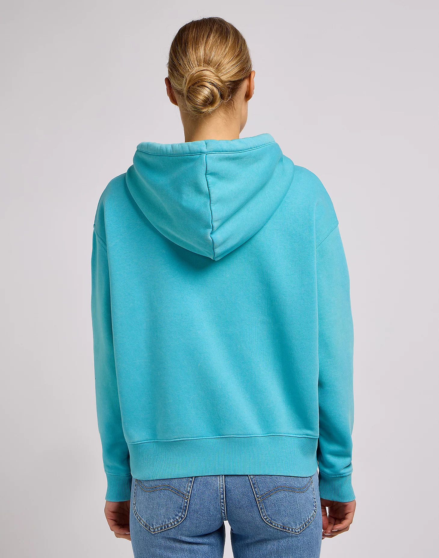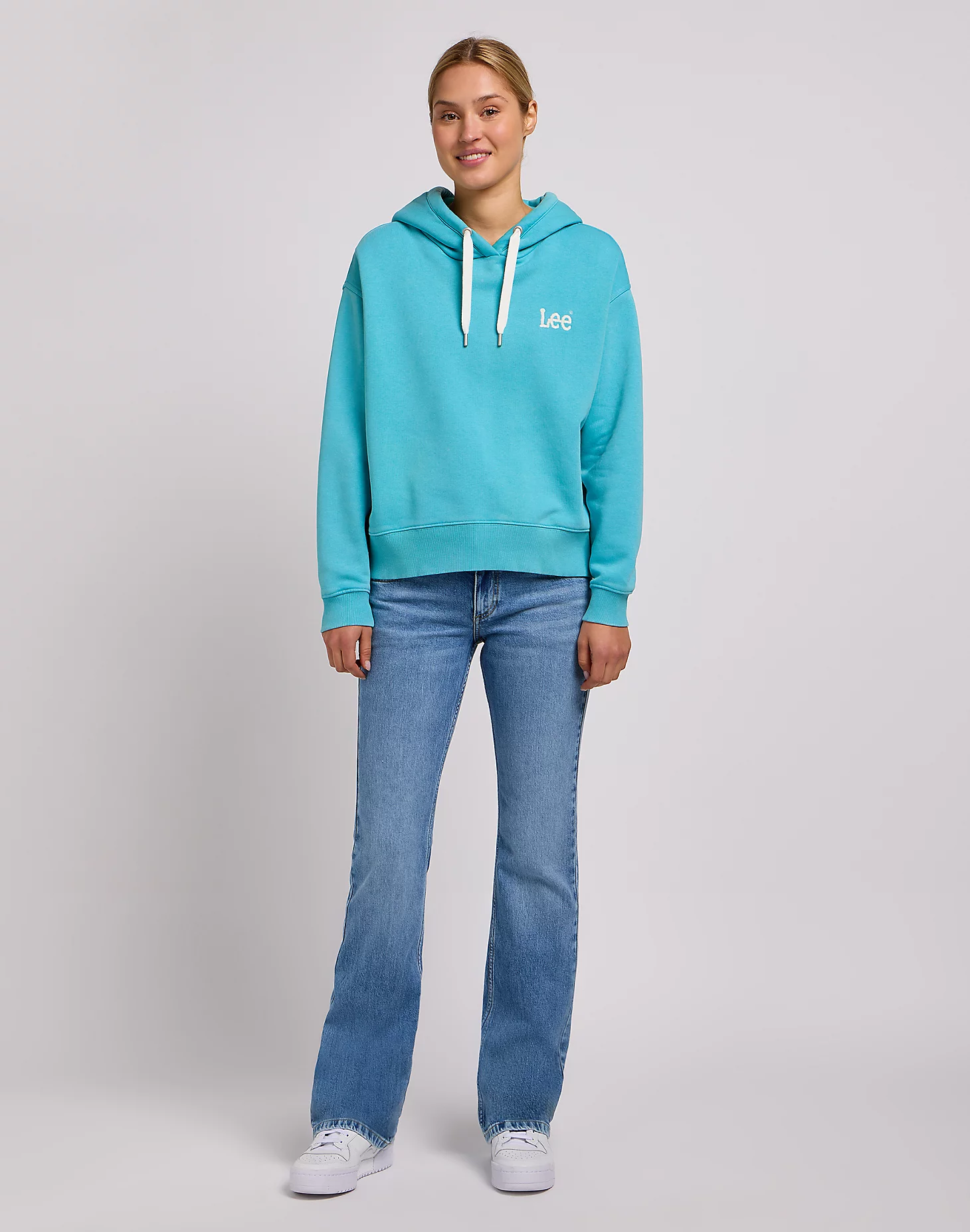 Základná mikina s kapucňou so sťahovacou šnúrkou a uvoľneným pohodlným strihom. Príjemné froté dodáva tejto mikine príjemný pocit pri nosení. Mikina je v krásnej bledomodrej farbe. Logo Lee je vyšívané zodpovedajúcimi farebnými niťami, ktoré dodávajú hrudníku malý detail.