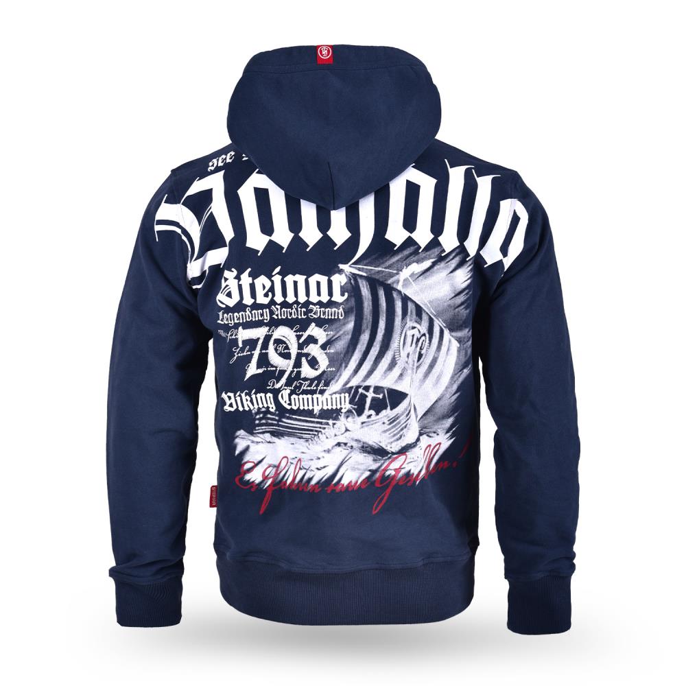 Klasická mikina Thor Steinar s kapucňou a typickým vikingským motívom. Dvojito prešitá kapucňa so štítkom na leme ,dolný lem a manžety rukávov sú vyrobené z kvalitného úpletu. Dve bočné vrecká, pevný hlavný zips, veľká potlač s výšivkou na chrbte, malé vyšité logo na hrudi. Všitý štítok v bočnom šve. Materiál: 70% bavlna, 30% polyester