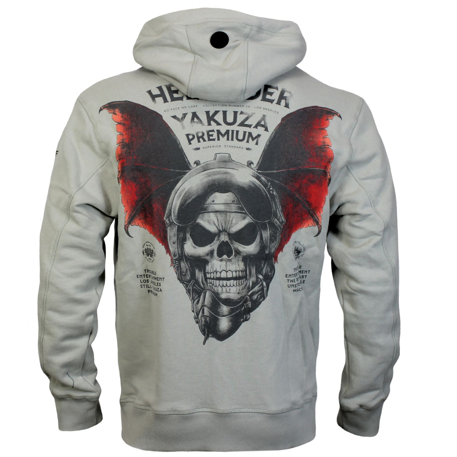 Špeciálna mikina YPHZ 4024 v šedo striebornej farbe z kolekcie Yakuza Premium Selection. Ide o limitovanú edíciu mikinu na zips z kolekcie 40. rokov. Mikina má kapucňu, zapínanie na zips a predné vrecká. Chrbát zdobí veľká, viacfarebná potlač netopierej lebky, zatiaľ čo potlač sa nachádza aj na ľavej strane hrude. Je to skutočne skvelá mikina vyrobená z pohodlnej, mäkkej bavlnenej zmesi. Rozmery pre veľkosť XL, v plochom stave, sú: pás/hrudník/chrbát/šírka rukávov 50/58/68/60 cm.