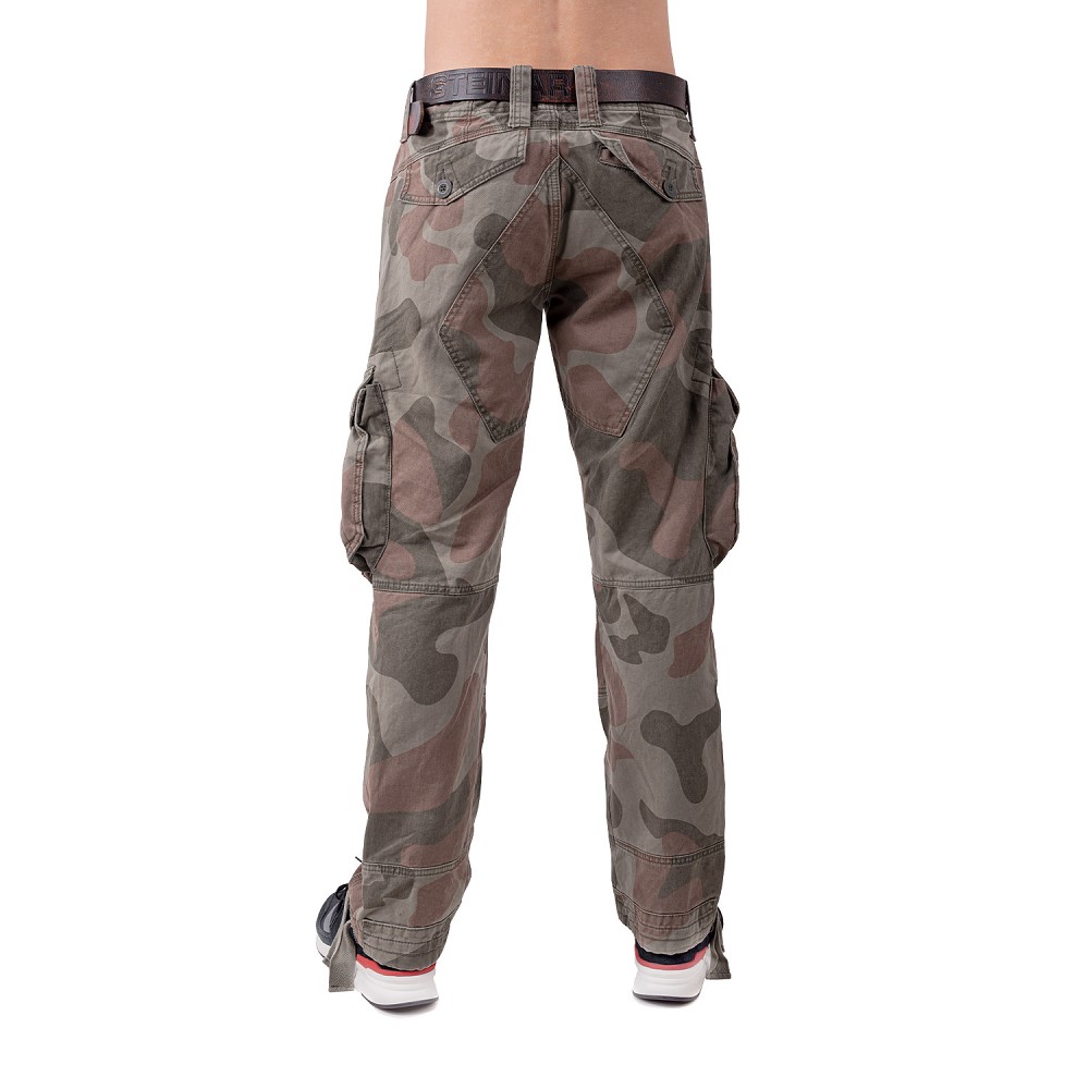 Pánske kapsáčové nohavice v maskáčovom vzhľade. Horné vrecká lemované lemovaním, veľa ozdobných švov. Bočné vrecká, zapínanie na jednostranný zips, lem nohavíc na nastavenie šírky, reliéfne gombíky, výšivka na bočnom vrecku.
