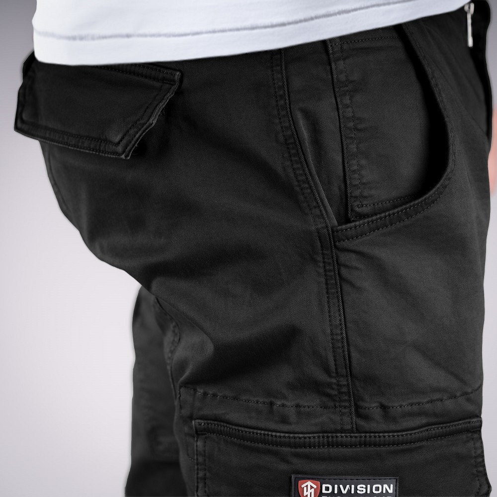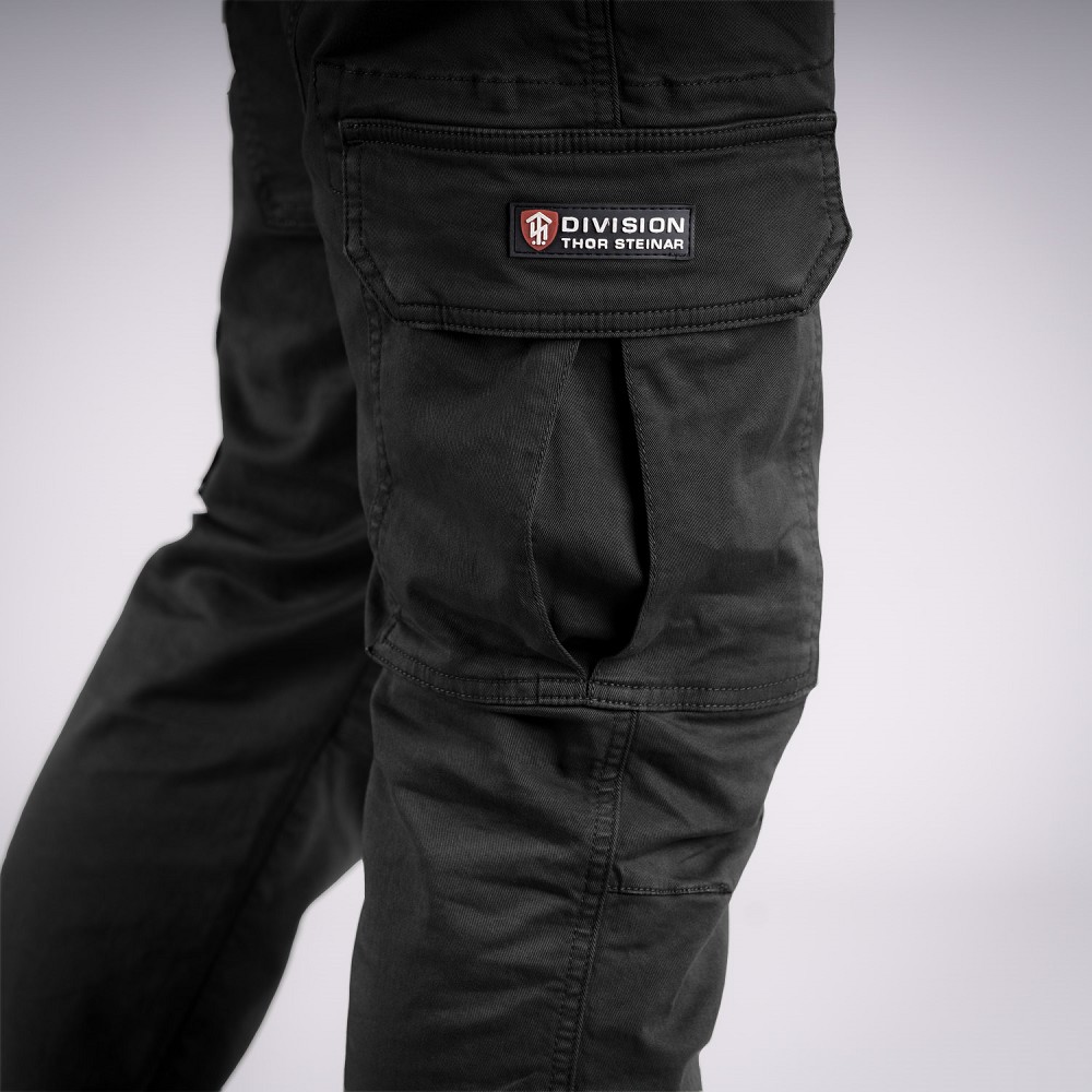 Klasické cargo nohavice Thor Steinar na každý deň. Veľké bočné vrecká sú rovnako ako zadné vrecká kryté príklopkou. Zosilnený zadný sed, dvojité švy, anatomicky tvarované kolená. Gumová nášivka na bočnom vrecku.