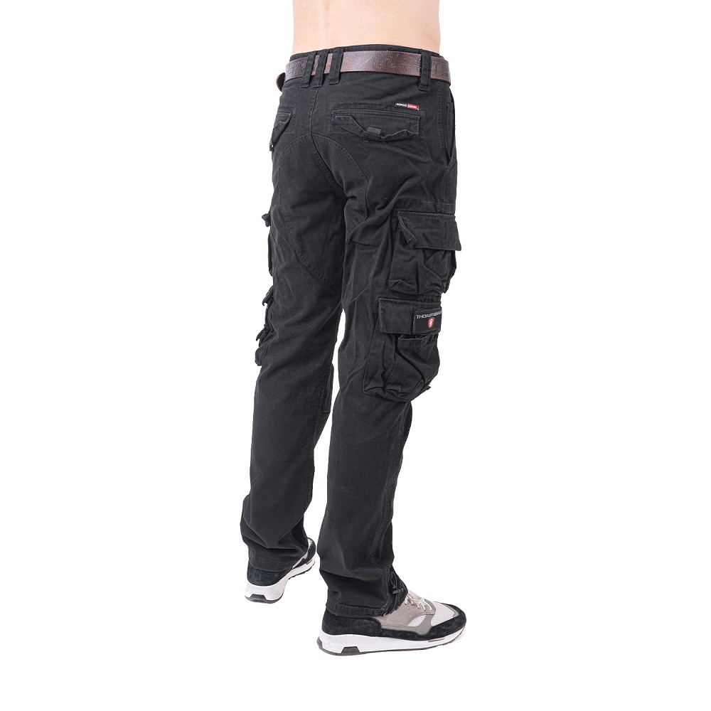 Naše klasické, robustné cargo nohavice voľného strihu, ako obvykle v stabilnej bavlnenej kvalite a so zdrsneným, mäkkým povrchom. Veľkosť pása je možné upraviť pomocou pásika na suchý zips; lem je šírkovo nastaviteľný s extra vrstvou látky; dvojité bočné vrecká a dve zadné vrecká sa zapínajú na gombíky; široký strih; na jednej strane je odnímateľná nášivka na suchý zips s výšivkou; tkaný štítok na zadnej strane.