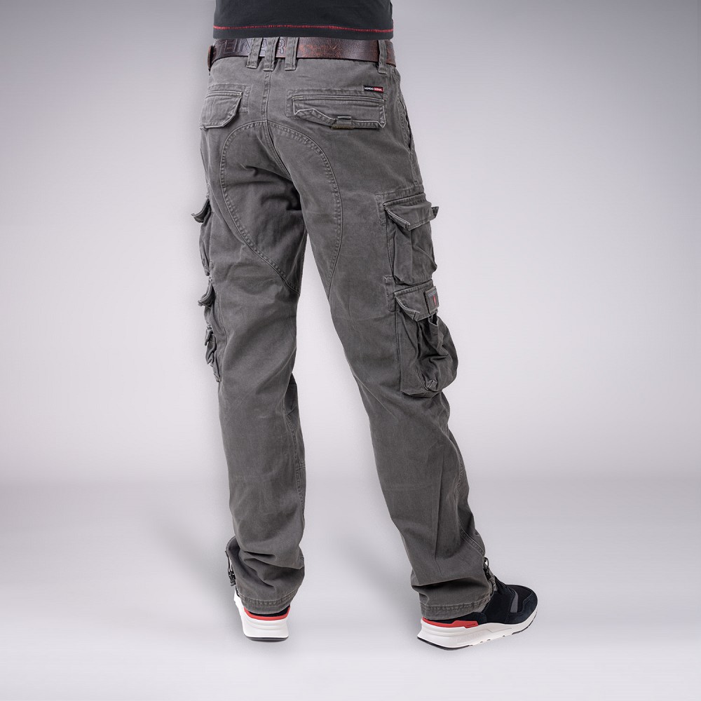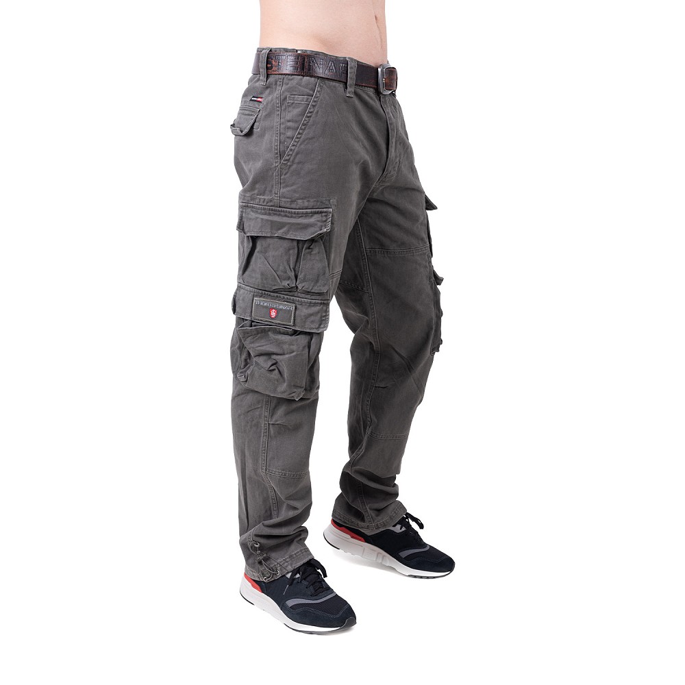 Naše klasické, robustné cargo nohavice voľného strihu, ako obvykle v stabilnej bavlnenej kvalite a so zdrsneným, mäkkým povrchom. Veľkosť pása je možné upraviť pomocou pásika na suchý zips; lem je šírkovo nastaviteľný s extra vrstvou látky; dvojité bočné vrecká a dve zadné vrecká sa zapínajú na gombíky; široký strih; na jednej strane je odnímateľná nášivka na suchý zips s výšivkou; tkaný štítok na zadnej strane.