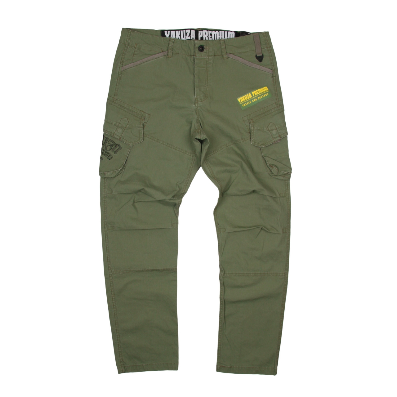 Pohodlné pánske nohavice s vreckami a zo zapínaním na zips. Malá nášivka pod pravým predným vreckom. Vzadu na spodnej časti nohy malý nápis. Dve bočné vrecká s rozparkom. Vrecká so zapínaním na gombíky a ďalšie vrecká na zips na každej strane nohavíc. Vyšívané aplikácie na ľavom vrecku s chlopňou. Zadné vrecká s chlopňou a zapínaním na gombíky. Elastické manžety na nohaviciach s prídavnými zipsami.