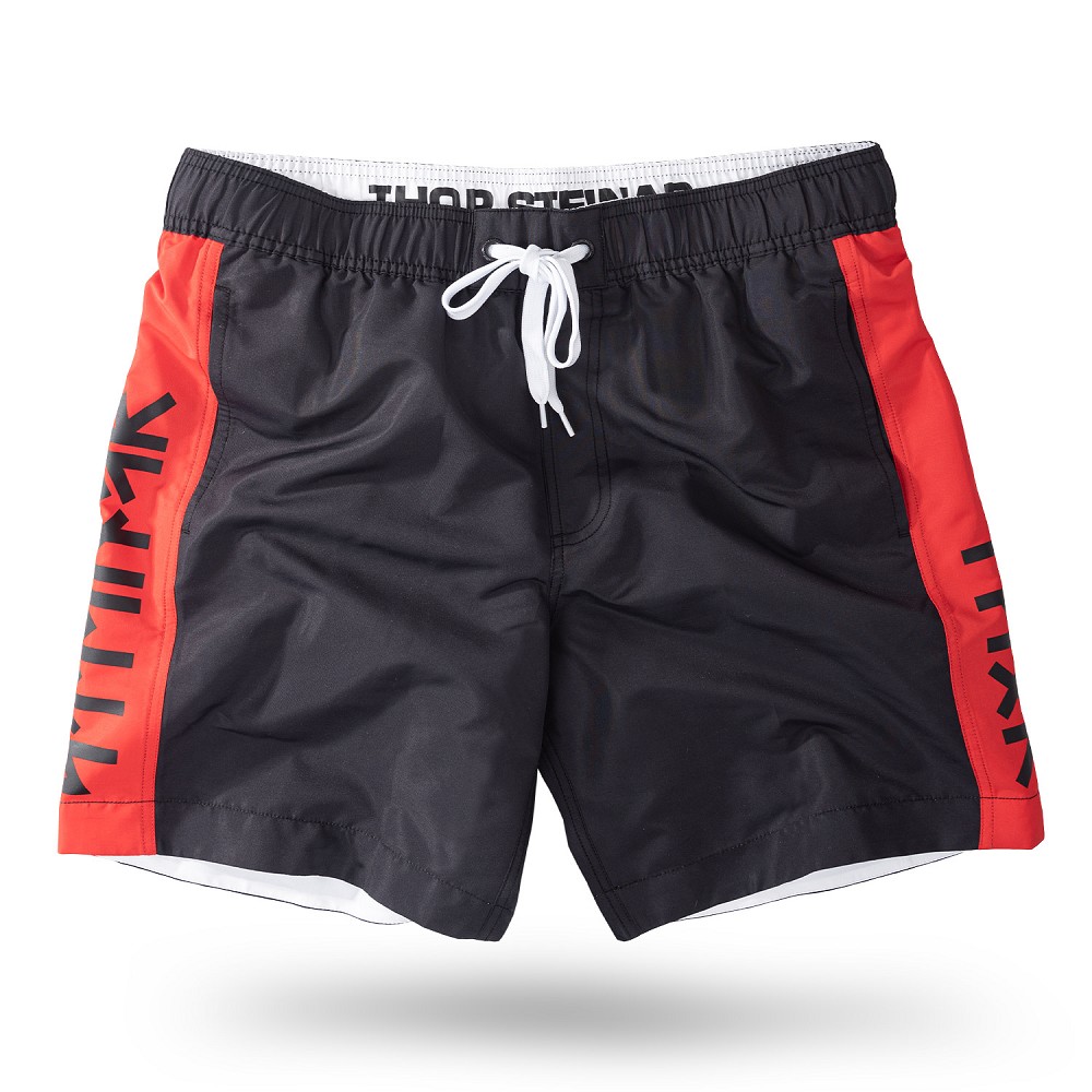 Krátke kúpacie šortky Thor Steinar vo veľmi peknom prevedení. Veľa pekných detailov, vnútorná podšívka zo sieťoviny, dve bočné a jedno zadné vrecko, veľká runová potlač na oboch nohaviciach.