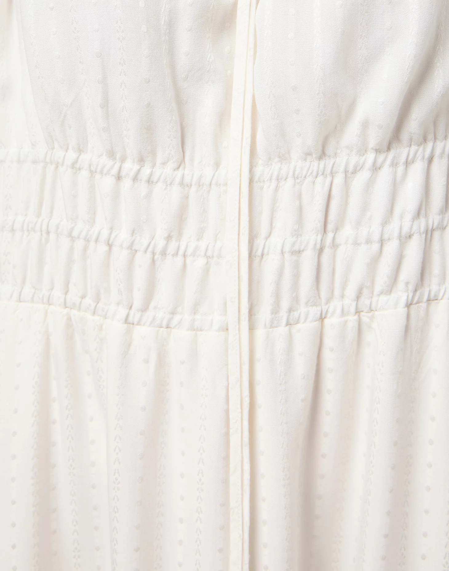 Naše Slim Summer Dress sú stelesnením letnej elegancie. Tieto sivobiele šaty vyrobené zo 100% viskózy ponúkajú svieži a ľahký pocit, ktorý je ideálny pre dni zaliate slnkom. Naberaný pás zvýrazňuje vašu siluetu, zatiaľ čo pružná sukňa prechádza do pôvabnej dĺžky do polovice lýtok. Tenké ramienka zaisťujú pohodlie a nádych jemnosti, vďaka čomu sú tieto šaty vhodné na každú letnú príležitosť. Látka v tomto odeve je vyrobená zo 100% viskózy, ktorá ponúka jemný dotyk a jemné splývanie, ktoré dopĺňa štíhlu siluetu. Tieto šaty, navrhnuté s lodičkovým výstrihom a tenkými ramienkami, spájajú pohodlie s nadčasovým letným štýlom. Má naberaný pás a pružnú sukňu, ktorá vytvára lichotivý tvar a ľahký pohyb pri akejkoľvek letnej aktivite.