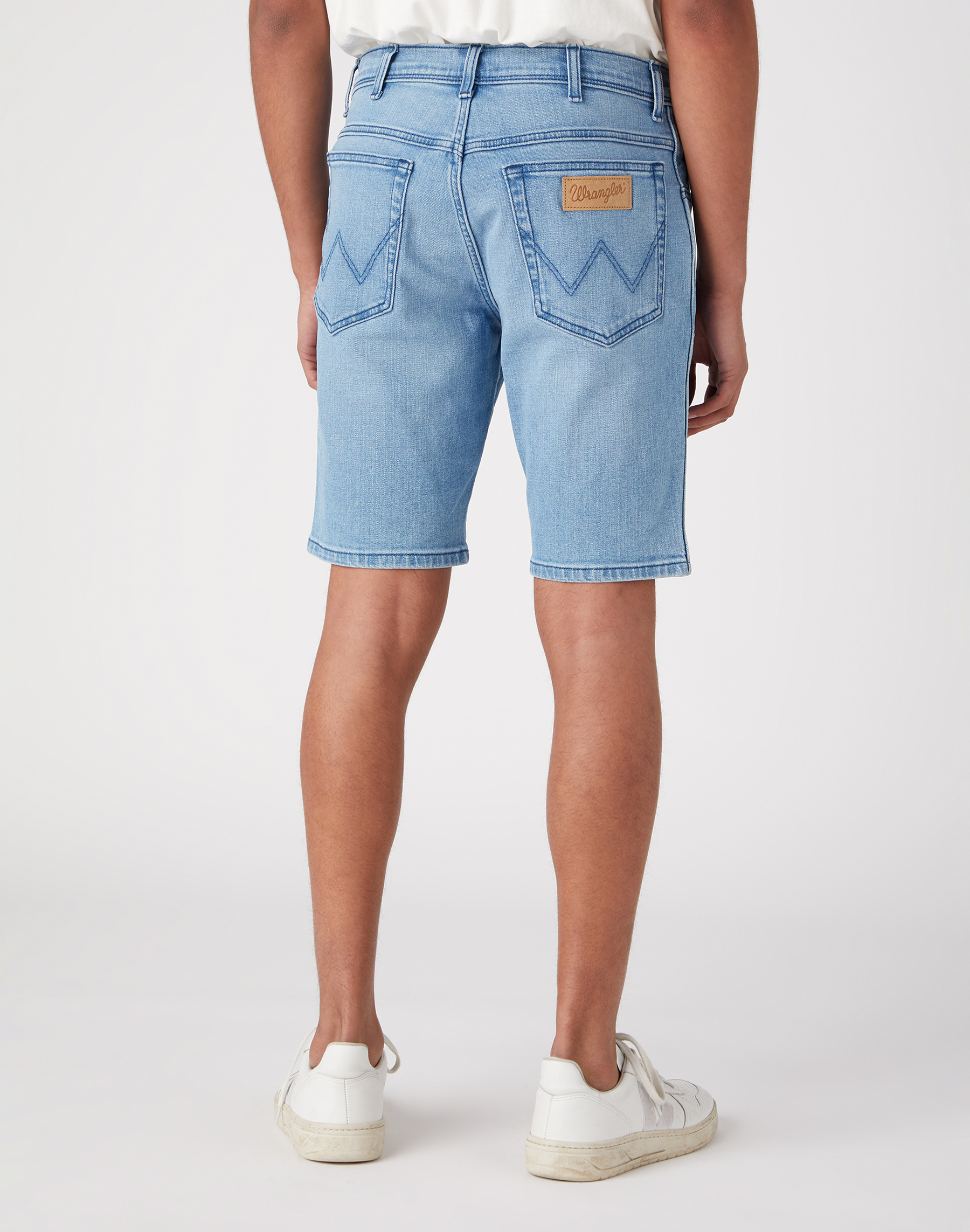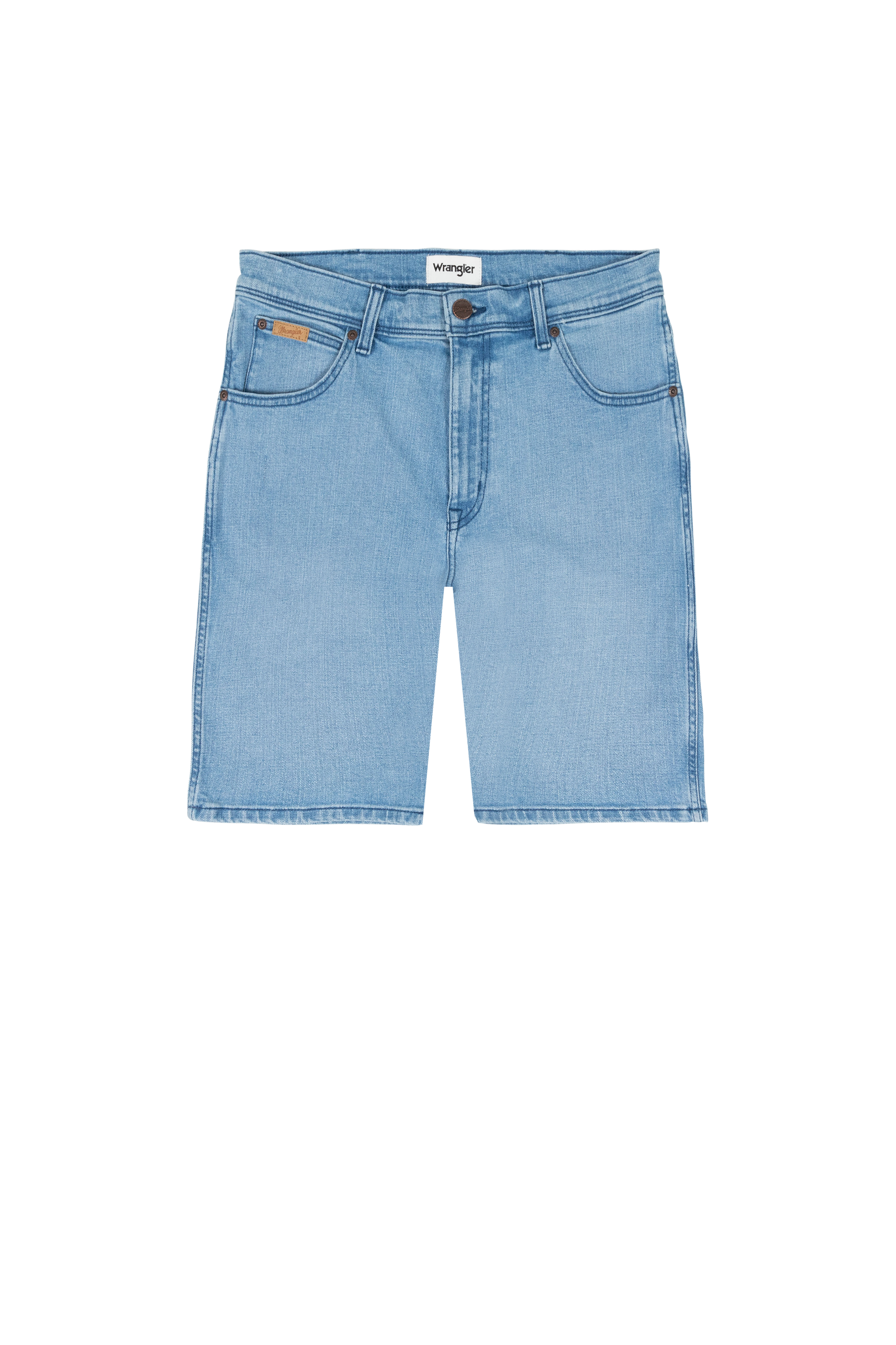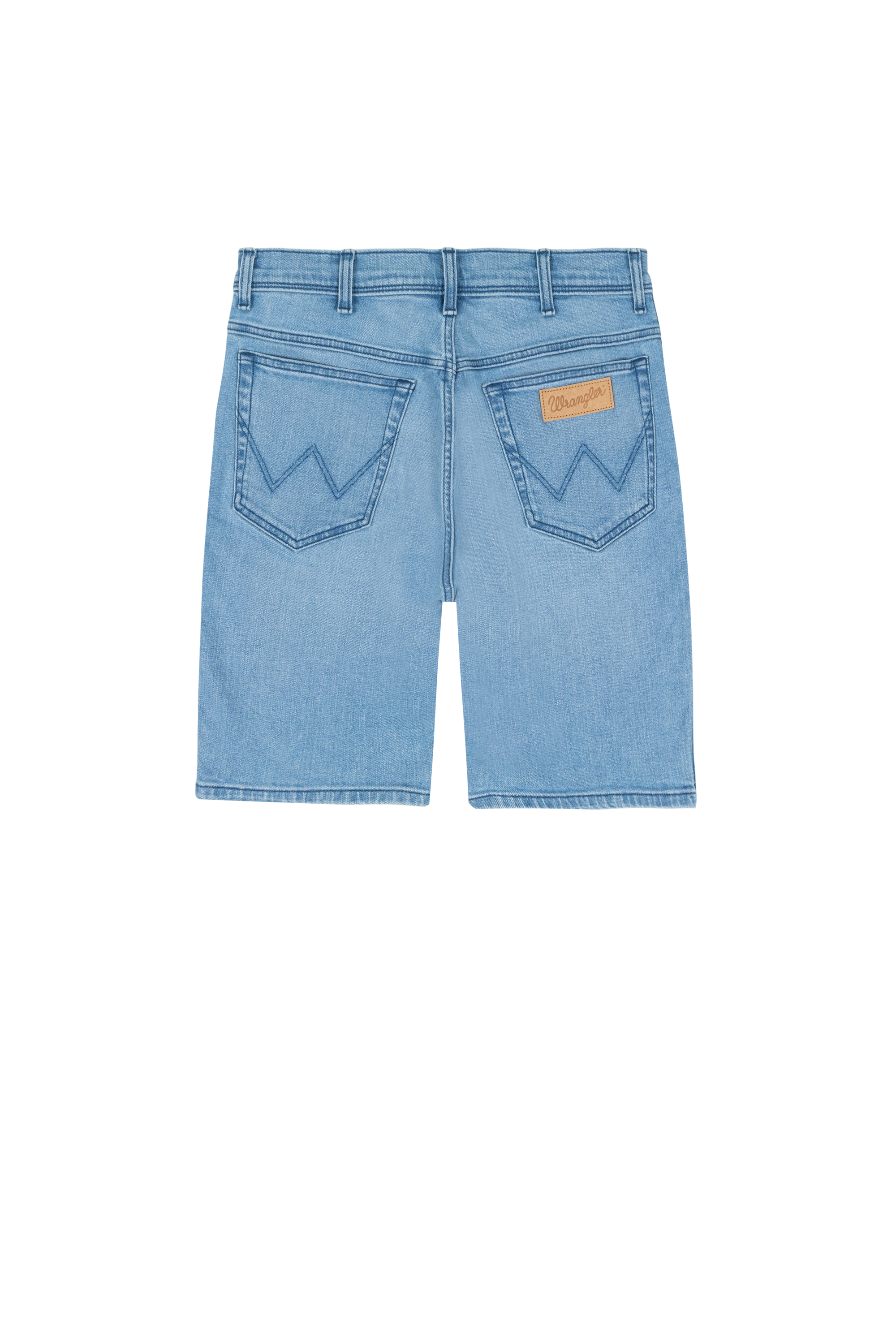 Pánske džínsové šortky WRANGLER v svetlomodrej farbe majú stredne vysoký pás, rovné nohavice ku kolenám a zipsové zapínanie. Obidve zadné vrecká sú prešite dvojitým stehom svetlej farby v tvare W. Na pravom zadnom vrecku nájdete typickú koženú nášivku s logom značky WRANGLER. Vyrobené sú z denimu a ľahkou prímesou elastanu, ktorý zaisťuje vysokú dávku pohodlia pri nosení.