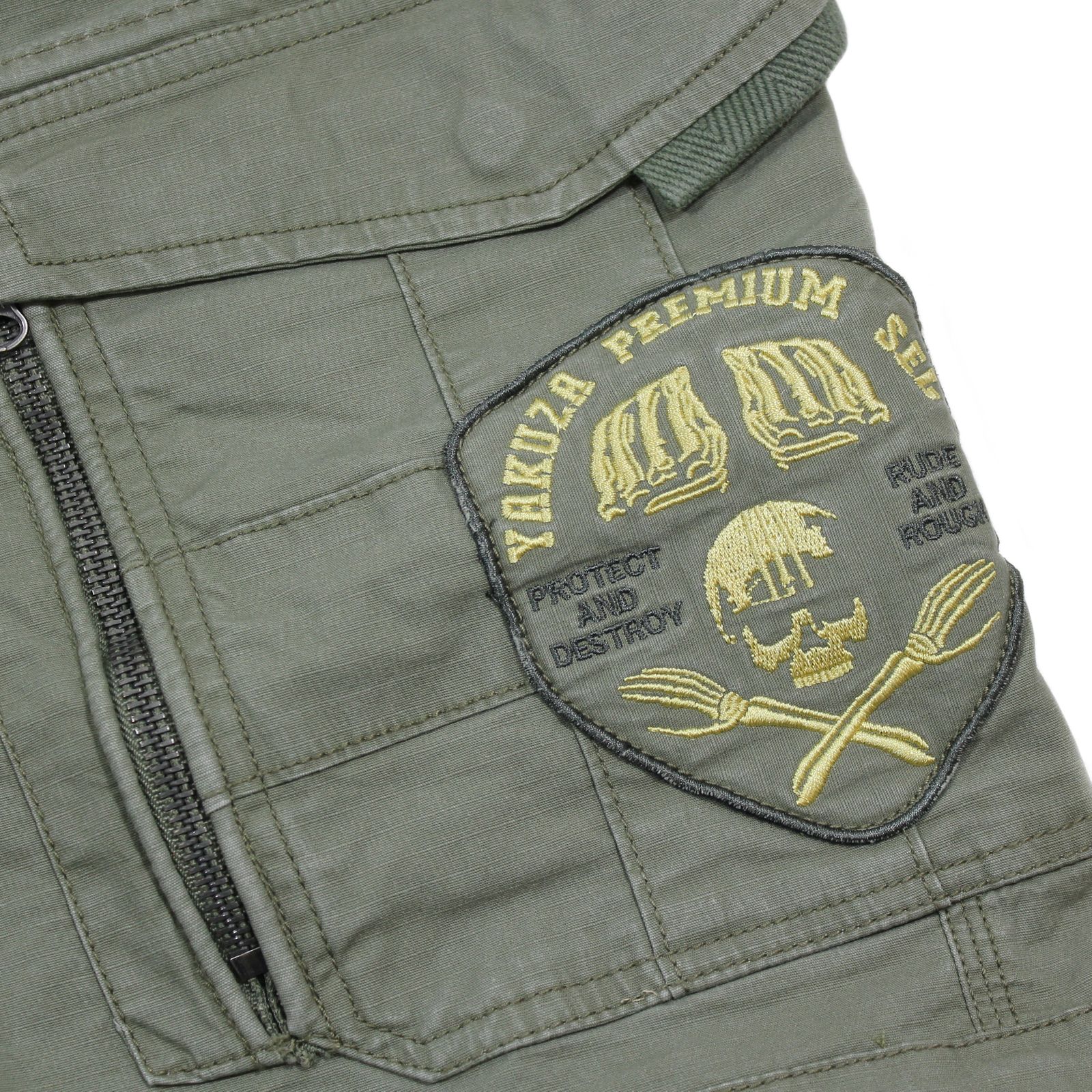Kapsáčové šortky YPCS 3450 v olivovom prevedení od Yakuza Premium Selection. Nohavice majú nášivku Yakuza Premium na ľavom bočnom vrecku a ďalšie zipsy na oboch vreckách. Na zadnej strane sú dve uzatvárateľné bedrové vrecká. Krátke letné nohavice majú dve bočné vrecká, bežný strih a dve šnúrky na nastavenie šírky. Pohodlné šortky voľnejšieho strihu, ktoré veľmi dobre sedia na postave. Provokatívne motívy a skvelá kvalita látky.