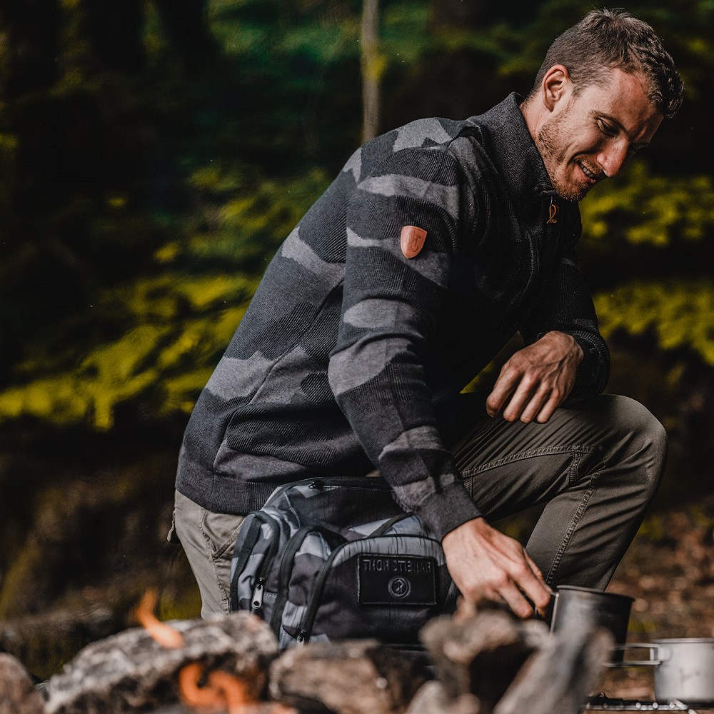 Vďaka svojmu pletenému maskáčovému vzoru tento trendový pletený sveter doplní najrozmanitejšie outfity. Vysoký golier a zips, na ľavej strane malý znak, rebrované patenty na rukávoch a leme. Zloženie: 50% Bavlna 50% Akryl