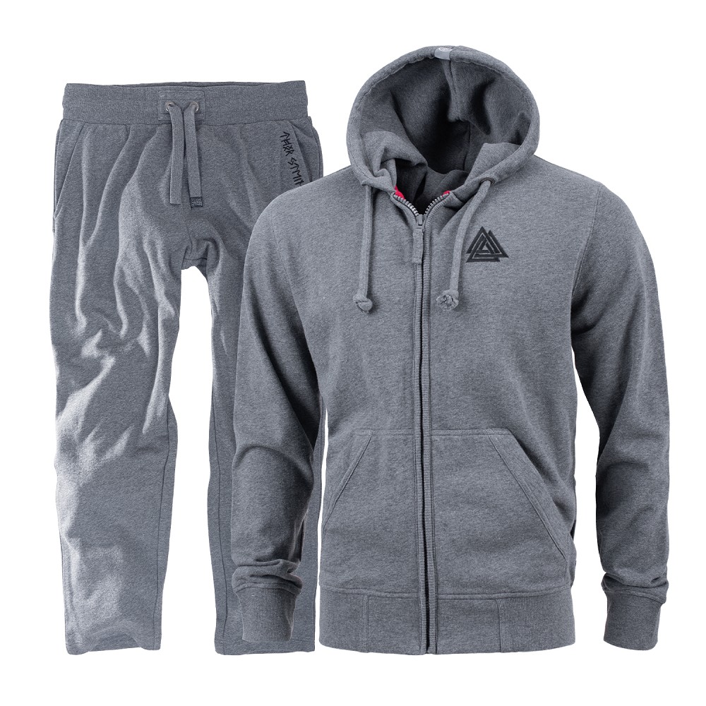 Pohodlná a štýlová súprava na šport a voľný čas. Športová mikina na zips s kapucňou Thor Steinar. Pevný predný zips, kapucňa s kontrasnou podšívkou, ploché šnúrky s tkaným logom, kvalitná výšivka na hrudi, klasická runová potlač na chrbte. Dve bočné vrecká, patenty na rukávoch a leme sú vyrobené z kvalitného úpletu.