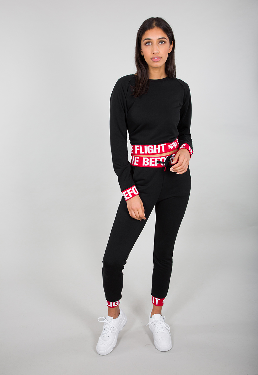 Dámske tepláky Alpha Industries s vysokým pásom. Tepláky s patentom v kontrasnej farbe potlačené logom, v páse patent kontrasnej farbe potlečený logom. Tepláky sa dajú v páse stiahnuť šnúrkov. Zloženie 80% Bavlna 20% Polyester