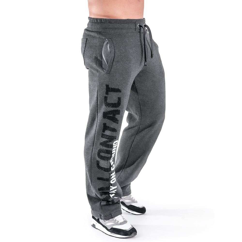 Teplákové nohavice z mäkkého bavlneného materiálu pre šport a voľný čas. Veľká potlač na nohe, bočné vrecká na zips, zadné bedrové vrecko. Široká guma v páse doplnená  šnúrkou na sťahovanie, širšie pohodlné nohavice.
