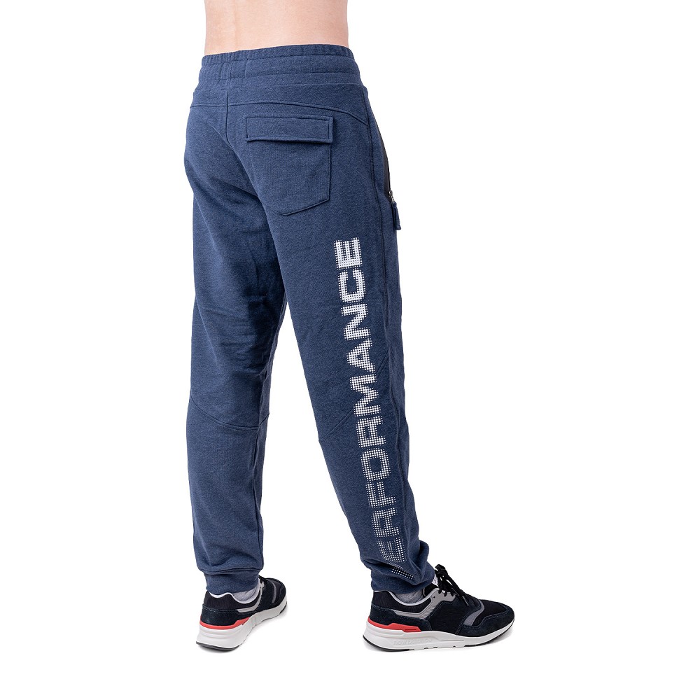 Teplákové nohavice z mäkkého bavlneného materiálu pre šport a voľný čas. Veľká kontrastná potlač na nohe, bočné vrecká s pogumovaným zipsom, zadné bedrové vrecko. Ozdobné prešitie, farebne zladený rebrovaný pás s pevnou gumou a hrubou šnúrkou. Moderné melírované prevedenie. Zloženie: 80% Bavlna 20% Polyester