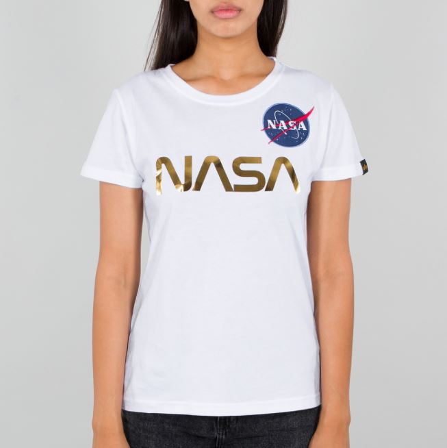 Dámske tričko ALPHA INDUSTRIES NASA s lesklou potlačou a s nášivkou vpredu.Zloženie: 100% Bavlna