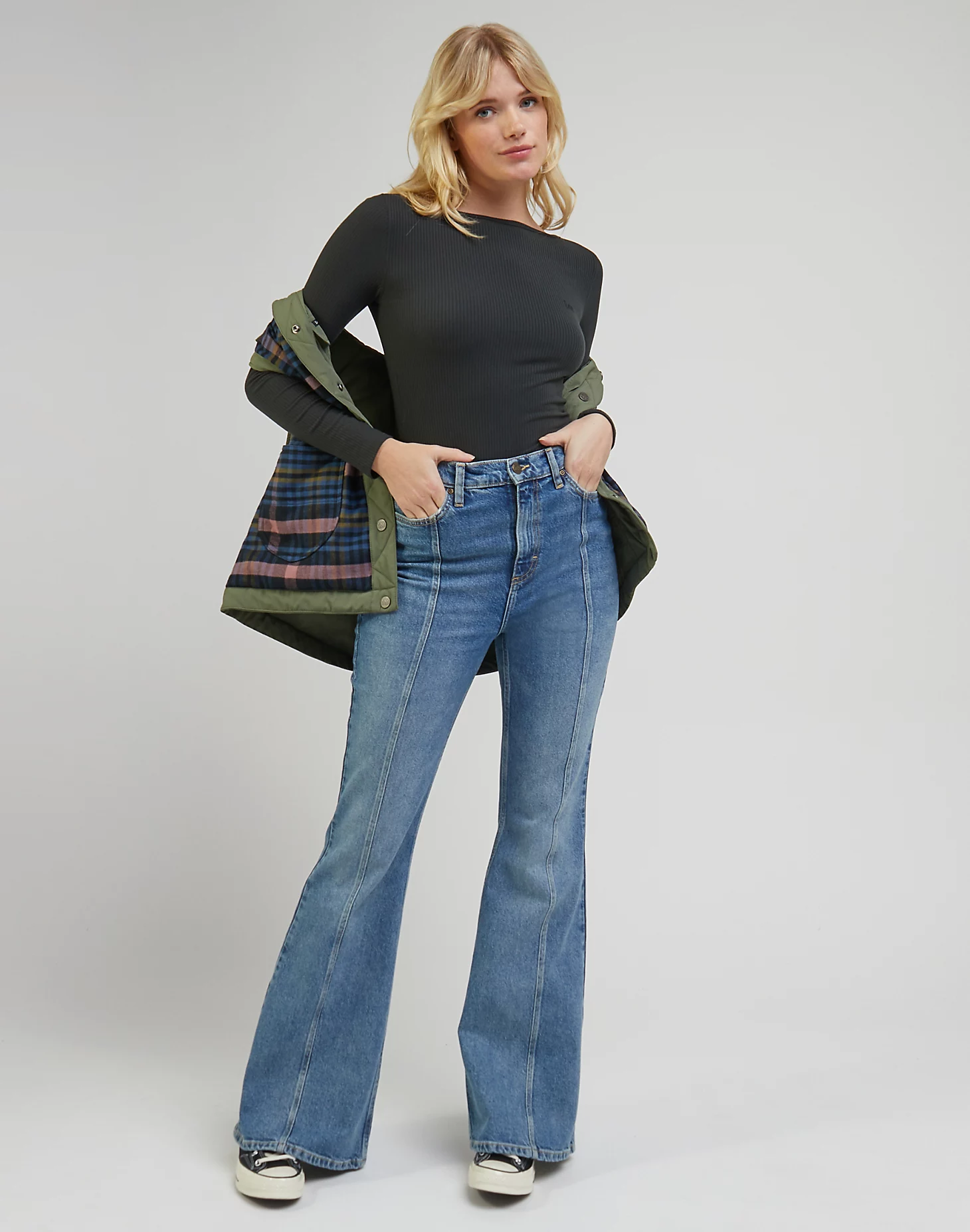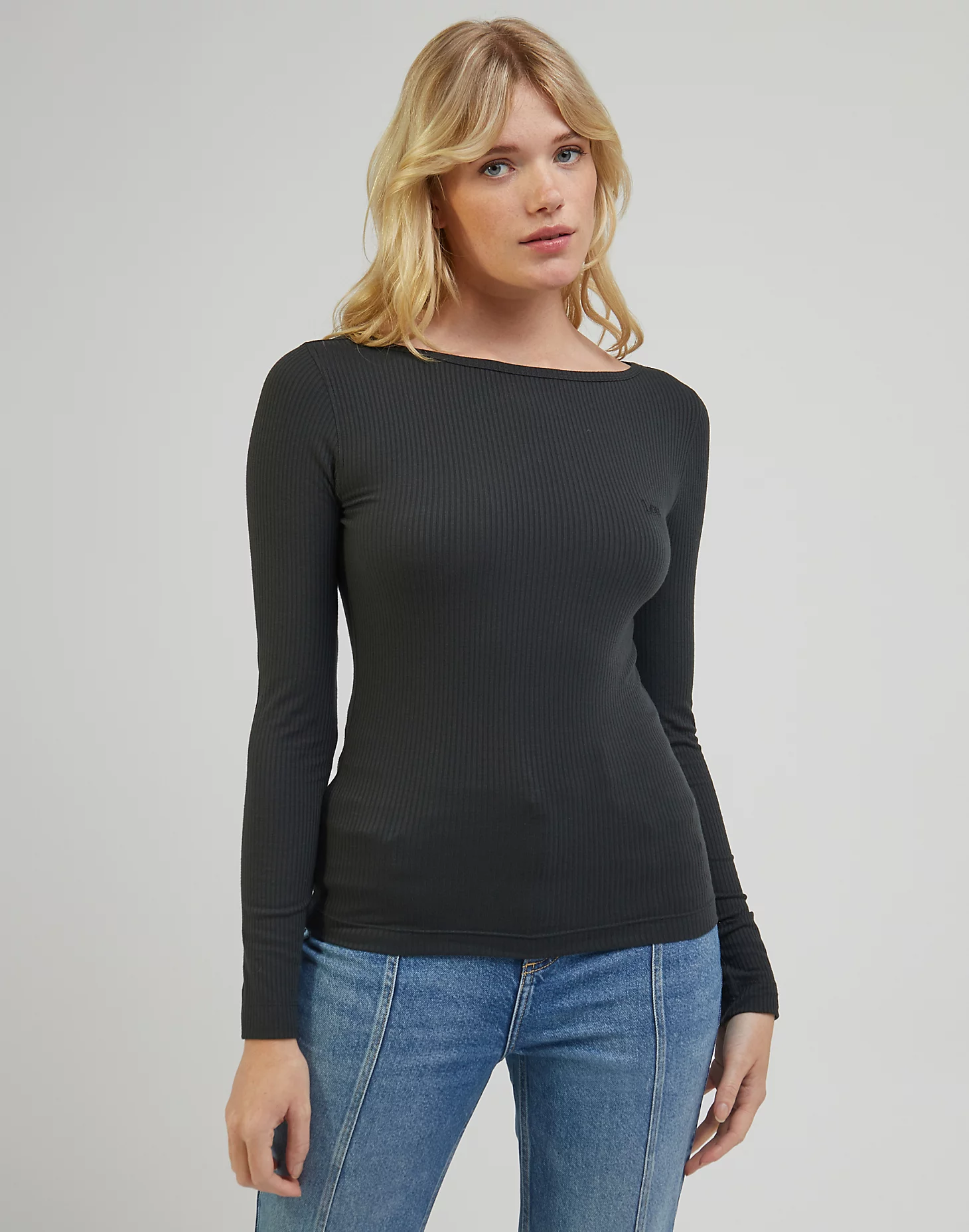 Logo Lee je na ľavej strane hrudníka. Rebrová štruktúra pridáva detaily. ● Priliehavý strih ● Rebrovaný ● Stretch ● Lodný výstrih