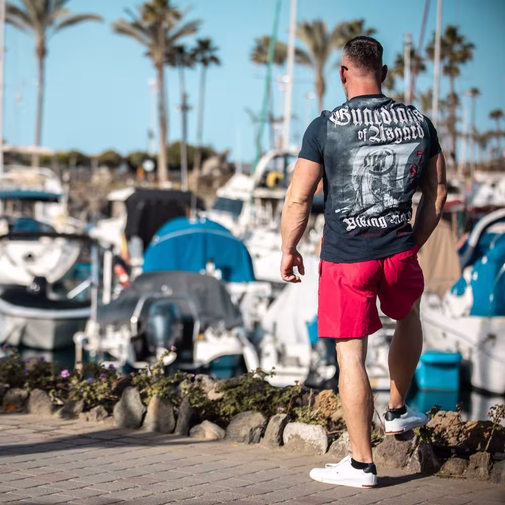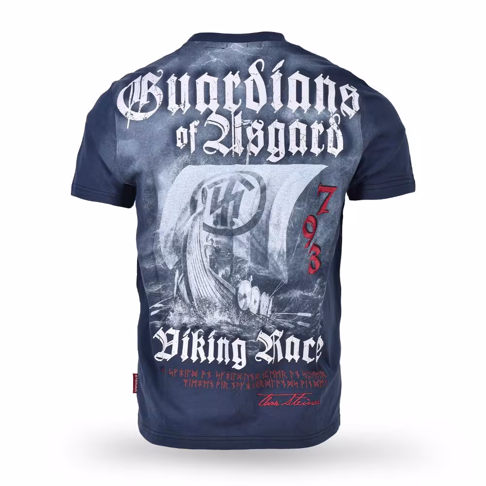 Pánske tričko Thor Steinar Guardians inšpirovaný severskou mytológiou je štýlový kúsok na každodenné nosenie aj voľnočasové outfity. Vďaka výraznej grafickej potlači „Guardians of Asgard – Viking Race“ na chrbte a decentnej nášivke na hrudi dáva tričko jasný vizuálny charakter .
