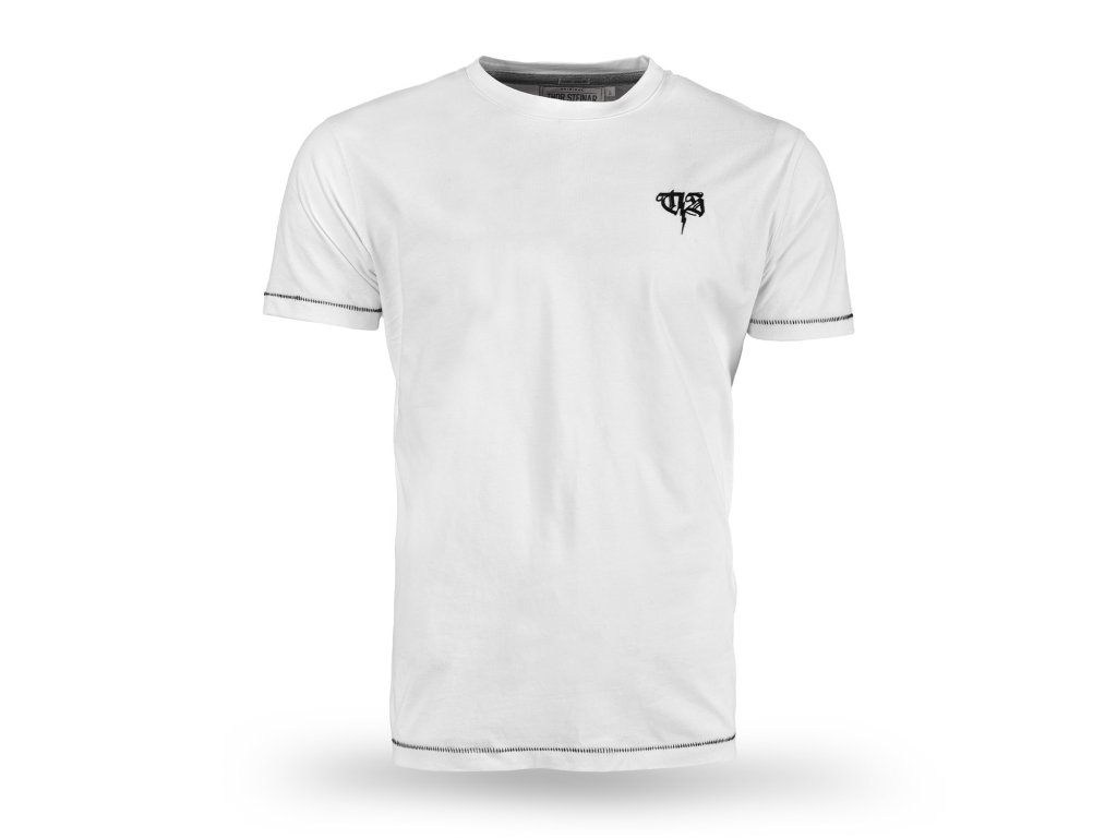Pre tvrdých chlapov, ktorí vedia, kde sú. Široké tričko s výstrihom; veľká potlač s výšivkou na chrbte; jemná výšivka na hrudi; Kontrastné švy na rukávoch a leme, jemné označenie.