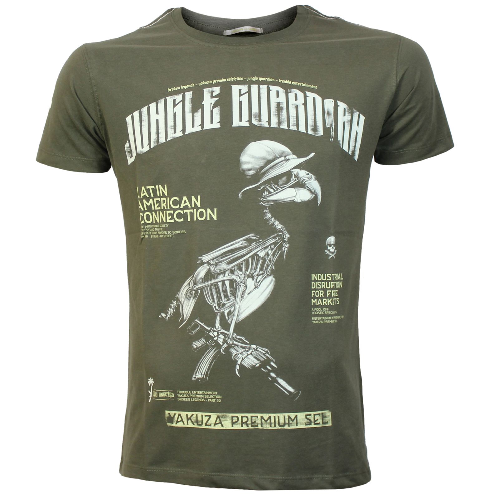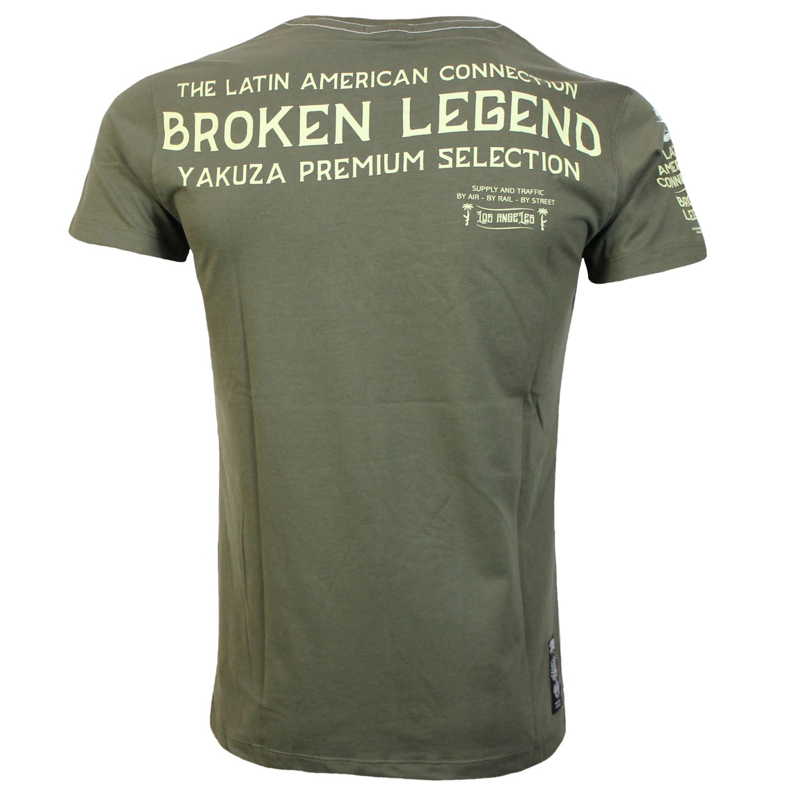Tričko v olivovej farbe s veľkou potlačou na prednej strane. Potlač na zadnej strane. . Mäkká bavlnená zmes vám poskytne skvelé pohodlie. Tričko  je vďaka priliehavému strihu trochu užšie. V prípade pochybností objednajte o číslo väčšie. Veľkosť na príklade XL pás / hrudník a chrbát cca 52 / 53 a 72 cm merané v ľahu.  Materiál: 80% bavlna a 20% polyester. Vyrobené v Turecku.