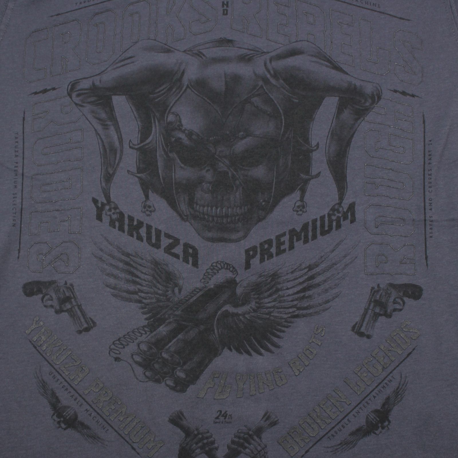 Tričko Yakuza Premium Selection YPS 3616 v tmavošedej farbe. Veľká jednofarebná potlač vpredu. Potlač na zadnej strane .Mäkká bavlnená zmes vám poskytne skvelé pohodlie. Vďaka strihu, ktorý prilieha na telo, je tričko trochu priliehavejšie, ak máte pochybnosti, objednajte si o číslo väčšiu. Veľkosť meraná v ľahu na príklade XL pás / hrudník a chrbát cca 52 / 53 a 72 cm.