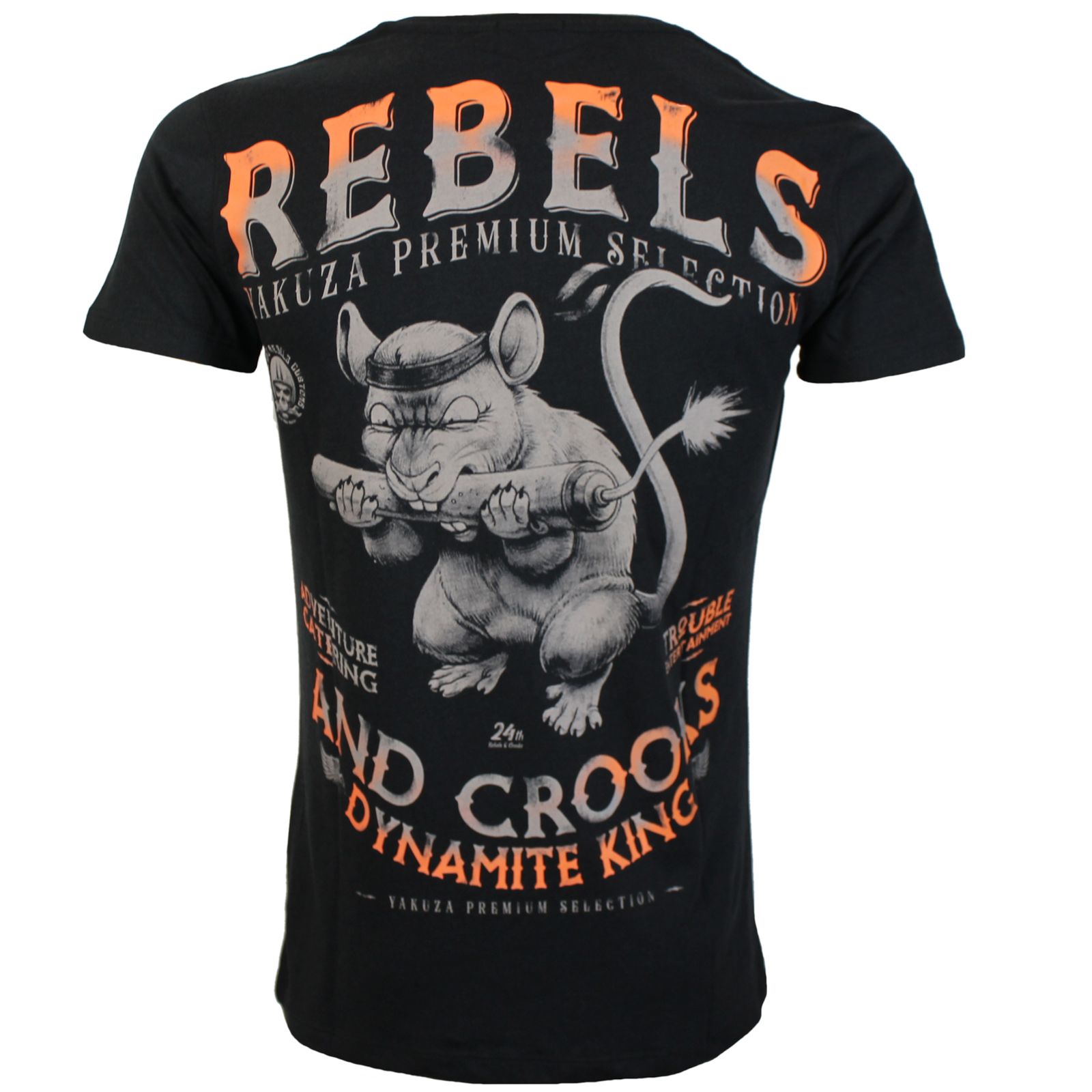 Tričko Yakuza Premium Selection YPS 3611 v čiernej farbe. Toto tričko z kolekcie jar / leto 2024 má na ľavej strane hrudi malú viacfarebnú potlač s vyobrazením potkana s dynamitom. Táto potlač je dostupná opäť vo veľkom rozmere na zadnej strane. Mäkká bavlnená zmes vám poskytne skvelé pohodlie. Vďaka strihu, ktorý prilieha na telo, je tričko trochu priliehavejšie, ak máte pochybnosti, objednajte si o číslo väčšiu. Veľkosť meraná v ľahu na príklade XL pás / hrudník a chrbát cca 52 / 53 a 72 cm.